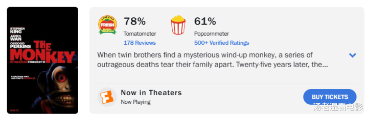 由Neon霓虹影业打造、温子仁监制、改编自斯蒂芬·金短篇小说的最新恐怖片《怪猴》于上周正式登陆北美院线。该片首周末三天获得1420万美元,成为继去年的《长腿》之后Neon霓虹影在北美院线第二大新片开画成绩。